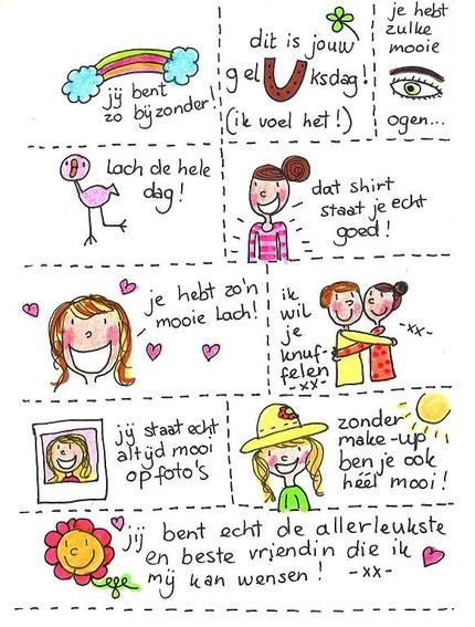 Maak een kaartje met een compliment of wens en geef dit aan wie het volgens jou echt nodig heeft. Geen idee wat je kan zeggen ... Hier vind je een paar voorbeelden!